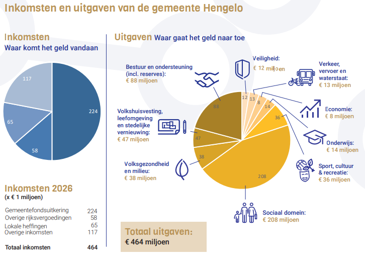 In de afbeelding hieronder ziet u de inkomsten en uitgaven voor 2026.