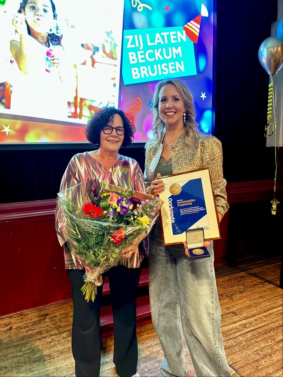 Wethouder Marie-José Luttikholt reikte vrijdagavond de Erepenning uit aan Stichting Dorpsraad Beckum, ter gelegenheid van het 50-jarig jubileum van deze actieve dorpsorganisatie. De Dorpsraad vormt sinds 1975 het kloppend hart van Beckum en zet zich in voor de leefbaarheid, verbinding en ontwikkeling van het dorp.