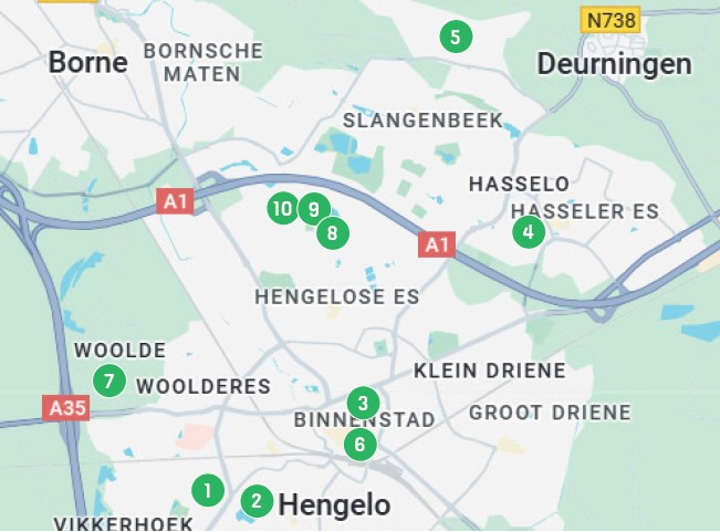 Laat u inspireren op één of meer plekken. Onder de plattegrond leest u wat u per woning of organisatie kunt verwachten.